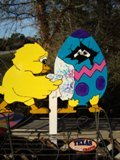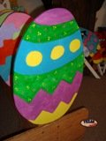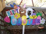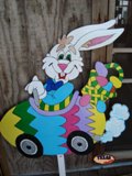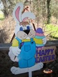 We make a variety of Easter Crafts. These yard signs are fun to place in your yard as decoration throughout the Easter Season. Some of the Easter crafts that we make are Easter eggs, Easter bunnies, Easter rabbits, Easter baskets, Easter chicks and many other religious Easter art items. The Easter crafts are cut out of plywood in our workshop. Then the item is hand painted with Kilz House Paint. Next, the Easter signs are painted with several coats of durable craft paint or house paint. Finally, the piece is sealed with an acrylic sealer. Sizes and colors may vary slightly because each piece is hand made. Our designs come from either Winfield Patterns or Sherwood Creations Inc. We use painted pine or cedar stakes. The stakes are screwed onto the back of the Easter yard sign. For the continental U.S. shipping and handling is included in the listed price. For shipping outside the continental U.S. please contact us through our Contact Us page. For more information about Easter go to History Of Easter