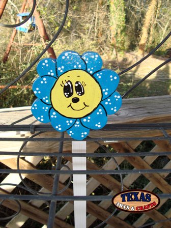 Yellow Flowers We make Yellow Flowers. The item is built in our workshop. The flower is hand painted yellow with a brown center and green leaves. The dimensions are 6.75 inches tall by 8 inches wide by 1 inch deep. The stake is 28 inches tall. The weight with packaging is 1.75 pounds. For the continental U.S. shipping and handling is included in the listed price. For shipping outside the continental U.S. please contact us through our Contact Us page. Price $23.50 (Price Includes Shipping) Red Flowers