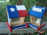 10 Bluebonnet Bird House Dimensions: 10.50"T/8.50"W/7.50"D Price $150 |  10 Texas Bird House Dimensions: 10.50"T/7.50"W/10"D Price $150 |  10 Texas Lone Star Cafe Dimensions: 9"T/9"W/7.50"D Price $160 | | | |