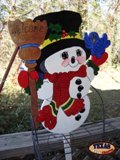 We also make a few miscellaneous winter items such as a mittens towel holder, welcome winter wreath, and snowman and tree decorations. We build these items in our workshop out of pine. They are hand painted with several coats of Kilz House Paint. It is then painted with several coats of durable craft paint or house paint. Then the piece is sealed with an acrylic sealer. Sizes and colors may vary slightly because each piece is hand made. Our designs come from either Winfield Patterns or Sherwood Creations Inc.